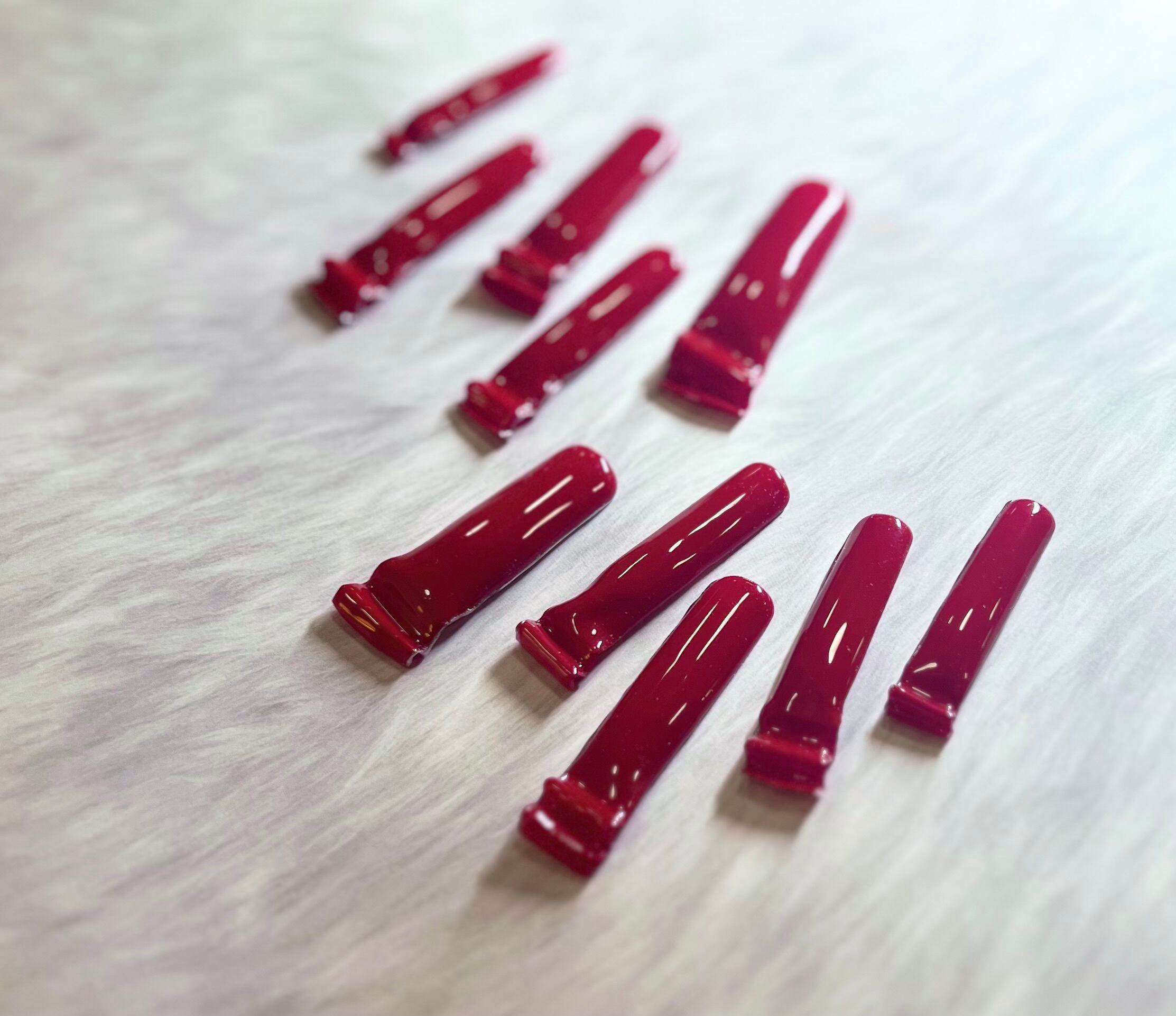 先が折れ曲がって縮んだような形状のレッドネイル。