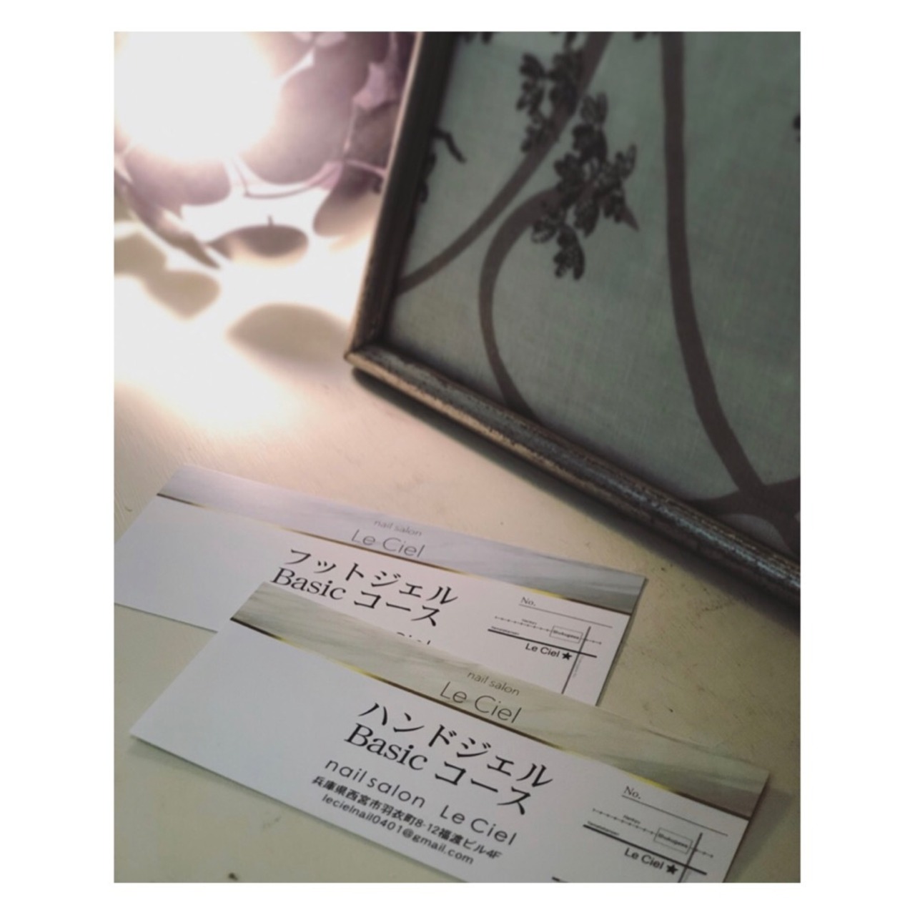 ネイルサロンLe Ciel夙川店でご利用いただける、ハンドジェル施術のギフトカード。単色カラー、グラデーション、10個程度のストーン、スタッズサービス。